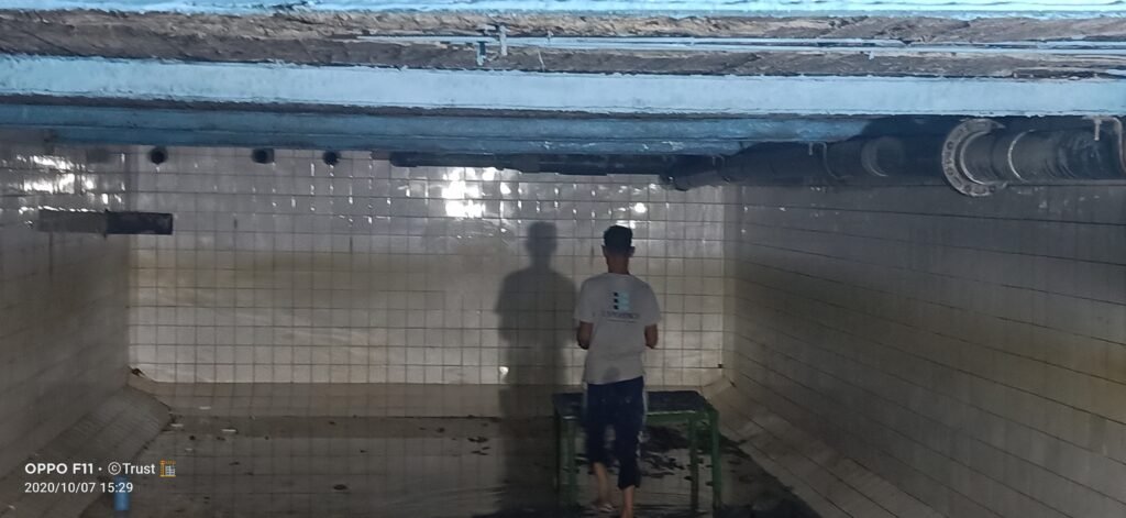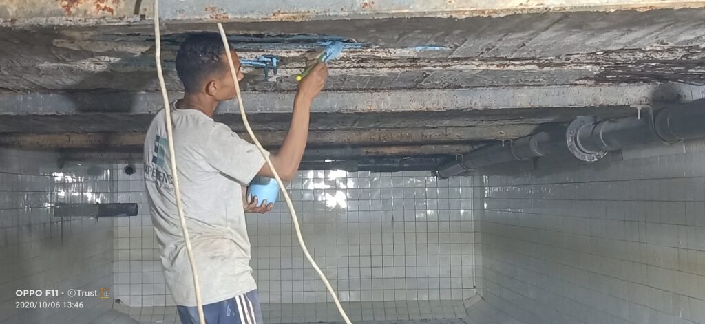 • The project includes the treatment, insulation, and whitening of the pump room ceiling in the swimming pool
